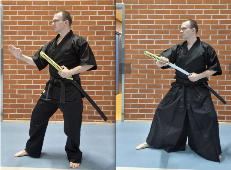 Välineenä käytetään pehmeää parikamppailumiekkaa sekä puista miekkaa. Jäljitelmämiekan voi hankkia myöhemmin edistyneellä tasolla, jolloin harjoitellaan enemmän miekan käsittelyä ja myöhemmin oikeankin miekan käyttö tuntuu turvallisemmalta.